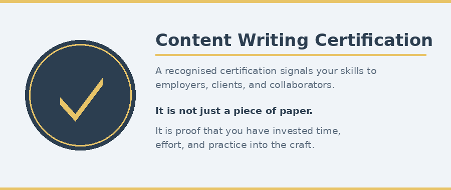 If you are applying for full-time content roles at companies, a content writing certification from a recognised institution such as HubSpot, Google, or a university can make your profile stand out in a crowded applicant pool. Hiring managers use certifications as a quick signal that you have invested in developing your craft.