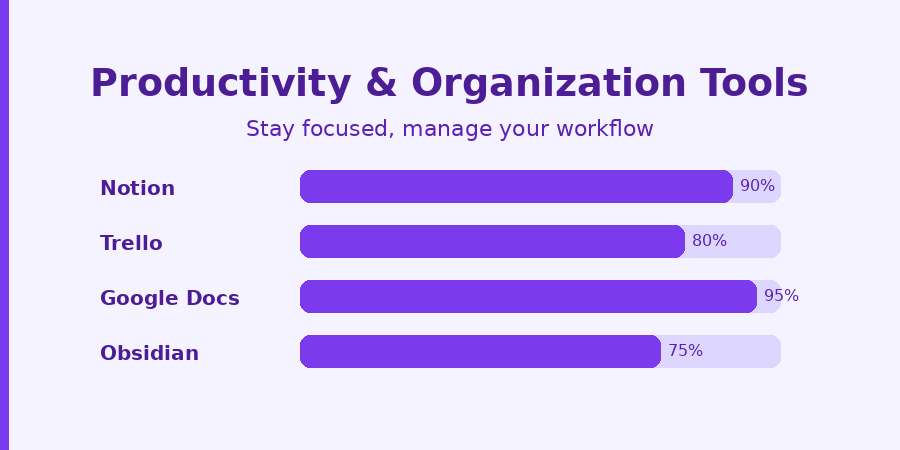 Start with no more than three to four tools. One for editing, one for writing or AI assistance, one for research, and one for organization. Using too many tools at once leads to tool-switching fatigue. Get comfortable with a small stack before expanding. Every tool you add should solve a specific, identified problem in your workflow.