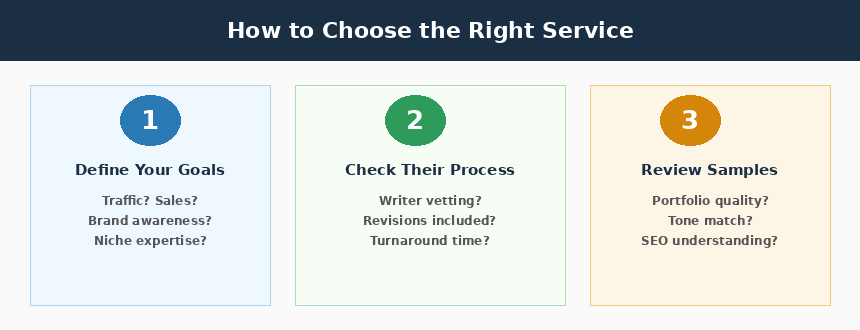 Choosing a content writing service is not just about finding the cheapest or fastest option. It is about finding the right fit for your goals, your audience, and your brand voice.