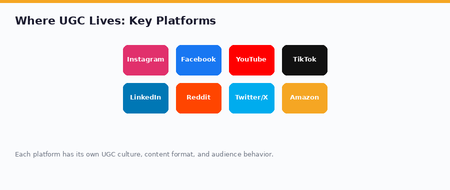UGC spans dozens of platforms, each with its own format and audience behavior.