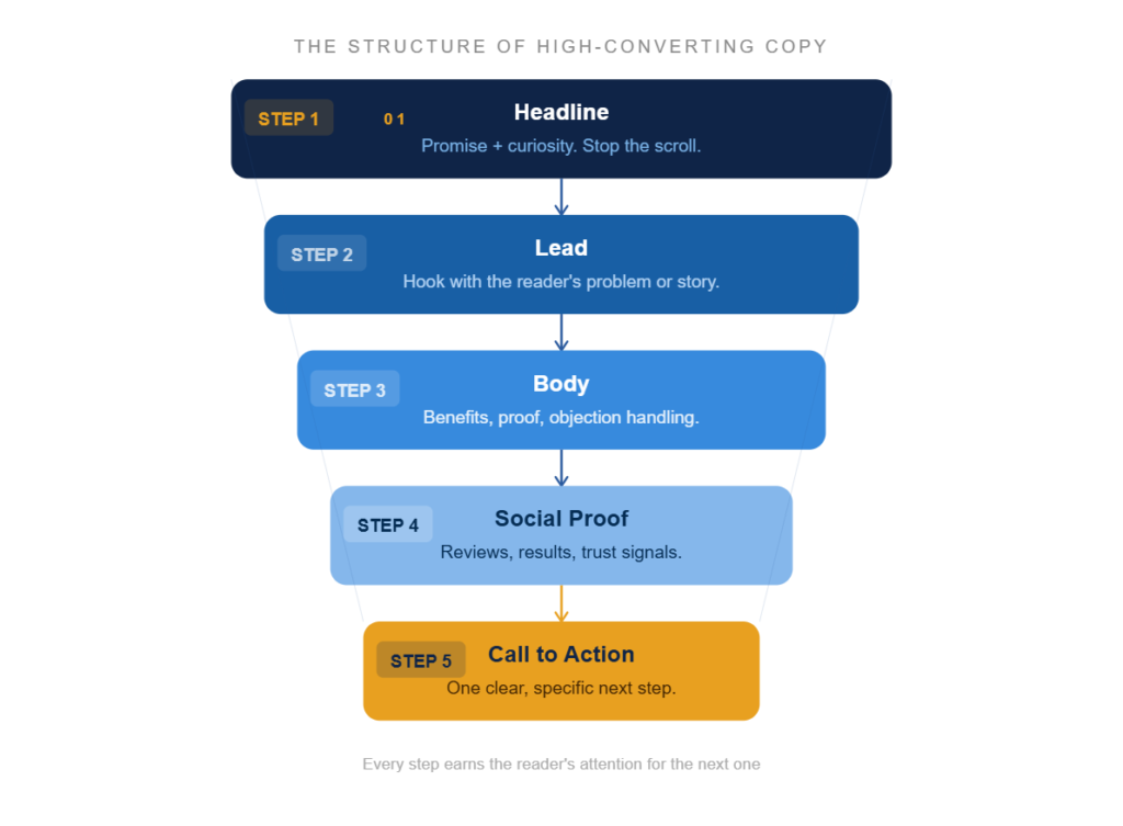 Copywriting is strategy disguised as words. Every sentence has a job to do.