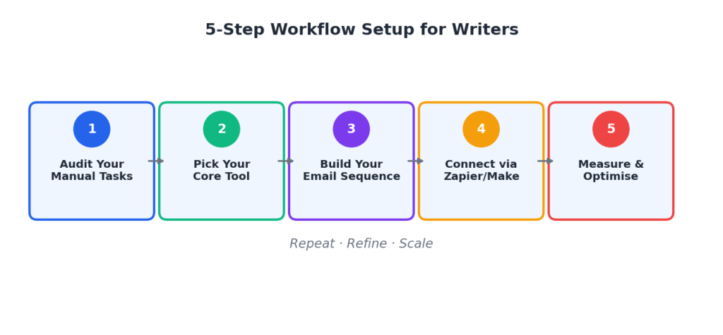 You do not need to set all of this up at once. Start with one layer, get it running smoothly, and then add the next. Most writers start with email automation because it has the most direct impact on revenue.