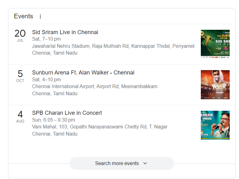With event schema markup, you can provide search engines with information like the event name, date, location, and ticket price.
