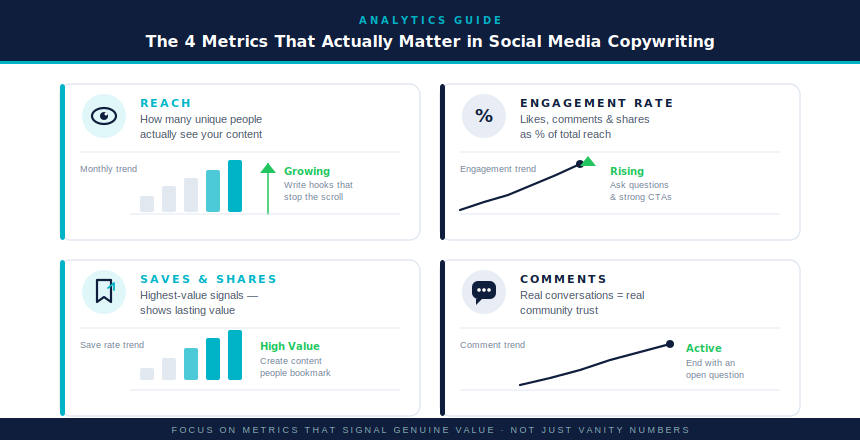 Even the sharpest social media copywriting improves when you pay attention to data. I track four things consistently.
