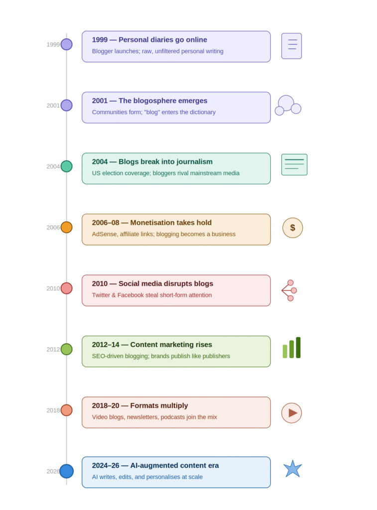 The word “blog” comes from “weblog,” which was a term used in the late 1990s to describe online journals. People used them to document their daily thoughts, share personal stories, and connect with others on the internet. Over time, blogs evolved. They stopped being just personal diaries and became a real tool for education, business, journalism, and creativity.