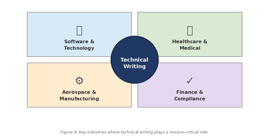 Beyond software, technical writing is critical in healthcare, where unclear instructions on medical devices and drug protocols can directly harm patients. It is critical in aerospace and manufacturing, where procedure documents determine whether complex systems operate safely. It is critical in finance, where regulatory filings and compliance documentation need to be both accurate and comprehensible to auditors and executives alike.